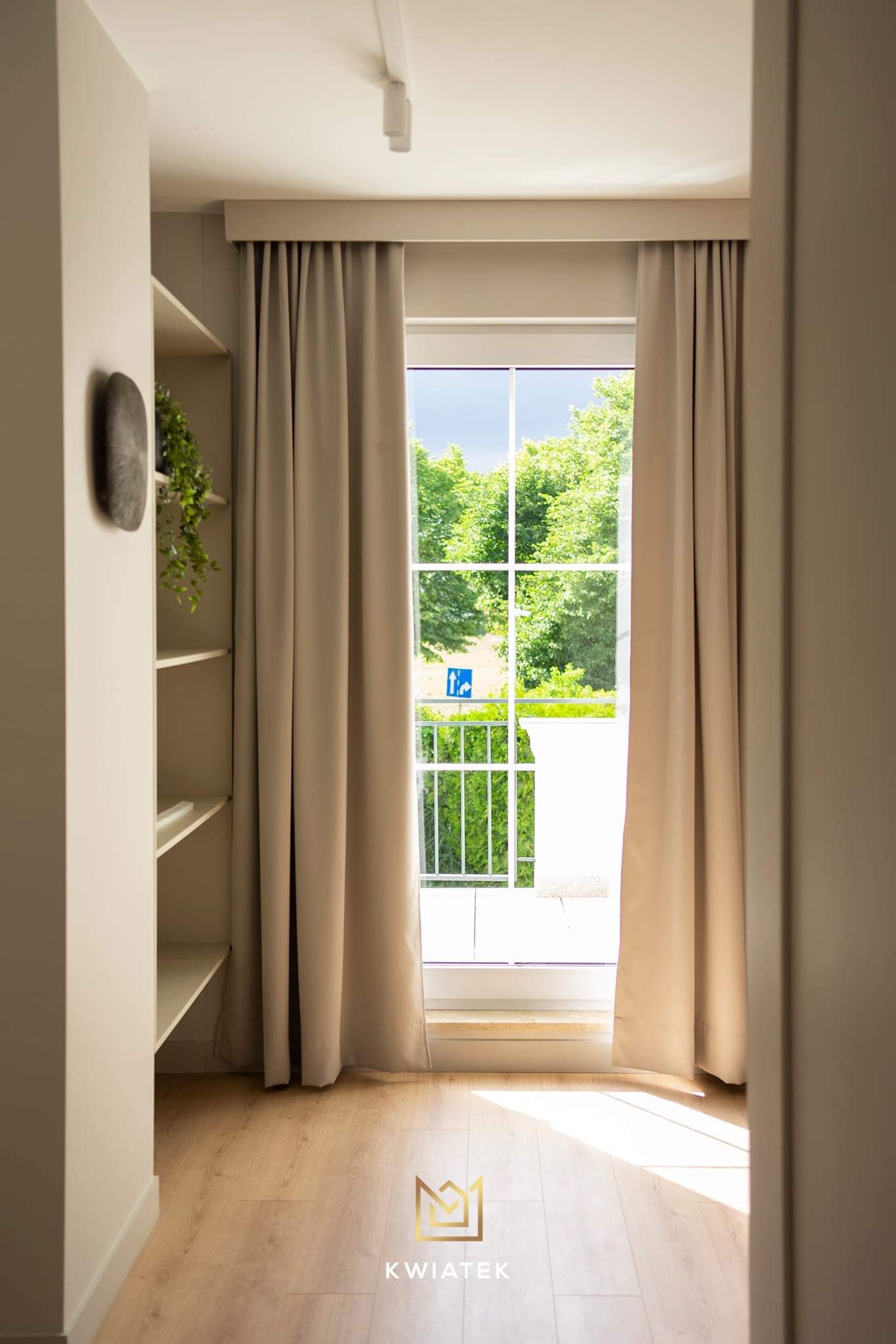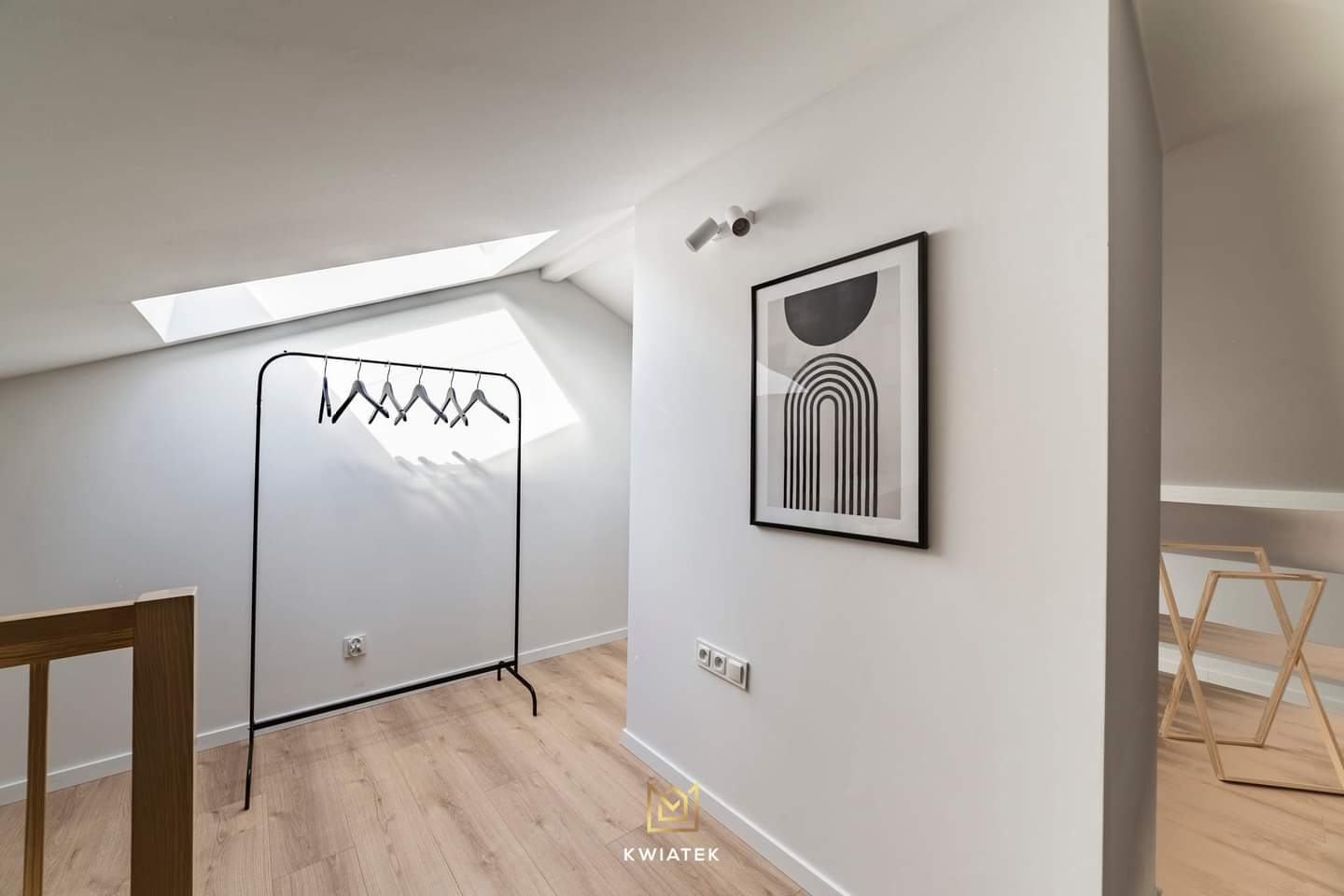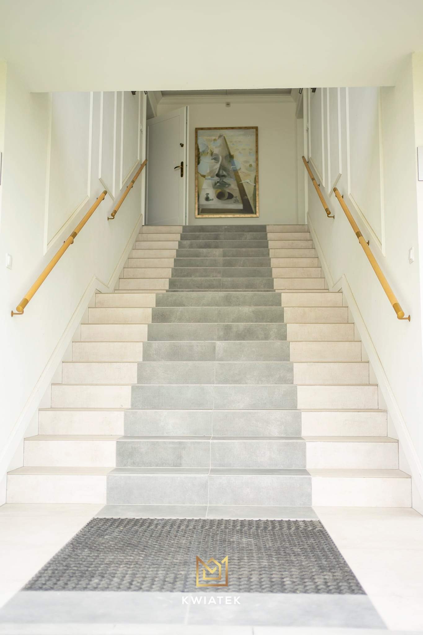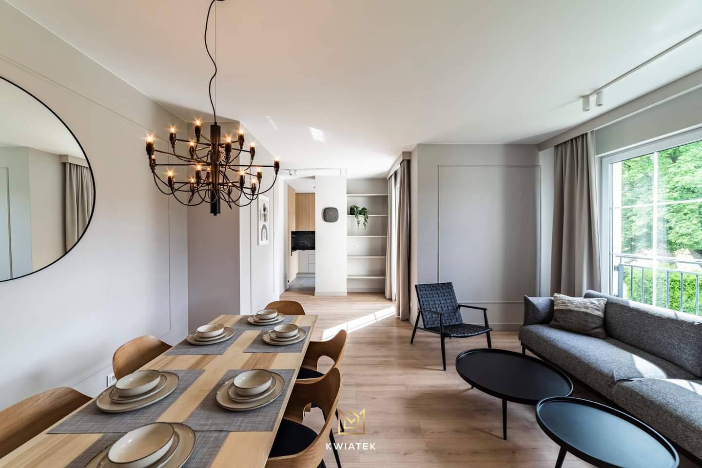 Apartament o powierzchni 76 m2 z użytkowym poddaszem o dodatkowej powierzchni 5m2 (po podłodze 40 m2) to doskonale zaprojektowana przestrzeń, która dla maksymalnej funkcjonalności wymagała przearanżowania niektórych stref. Stylistyka wnętrza została dokładnie przemyślana i stanowi spójną architekturę, dopracowaną w najmniejszym szczególe. To wyjątkowy Apartament, w którym każdy poczuje się komfortowo, nie tylko ze względu na wysoką jakość wykończenia oraz użytych materiałów, ale także poczucie przestrzeni dzięki temu, że Apartament jest dwustronny, w każdym pomieszczeniu posiada duże okna z widokiem na park, a także posiada dwa wyjścia na taras z salonu oraz kuchni.