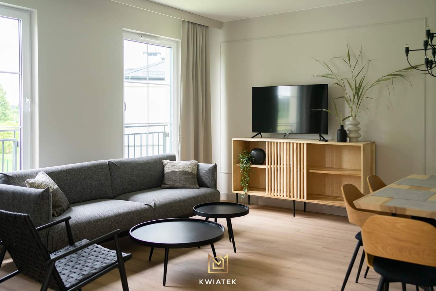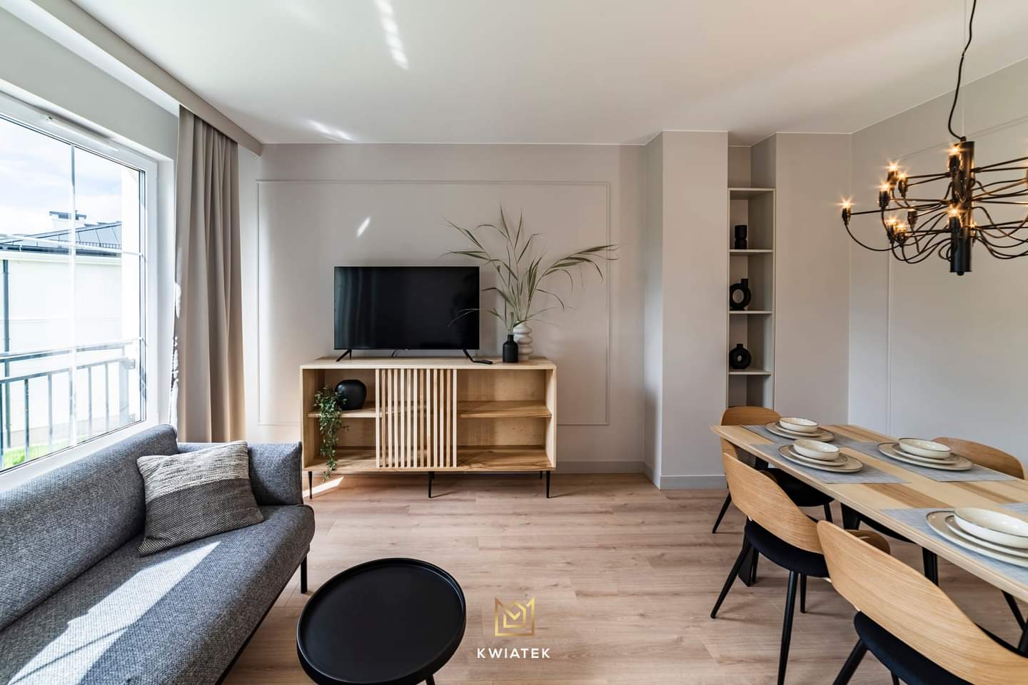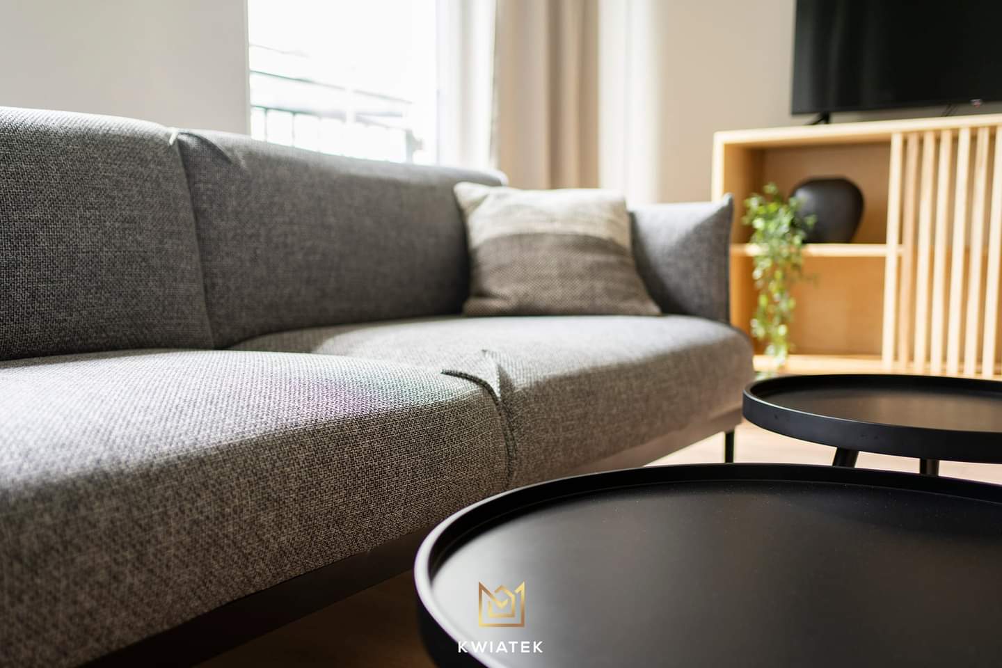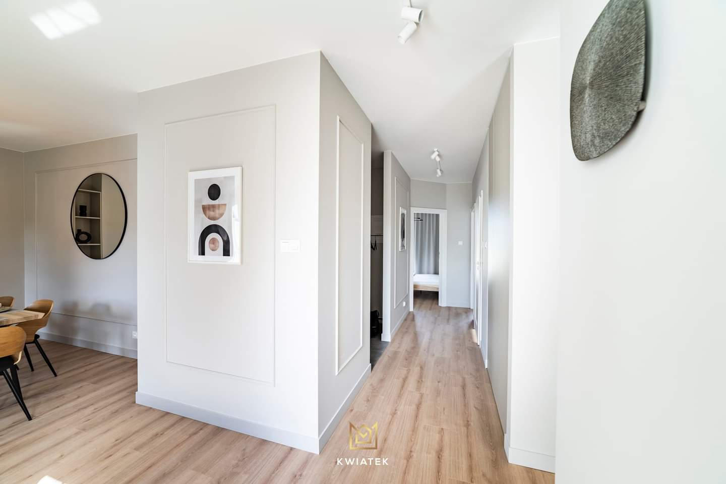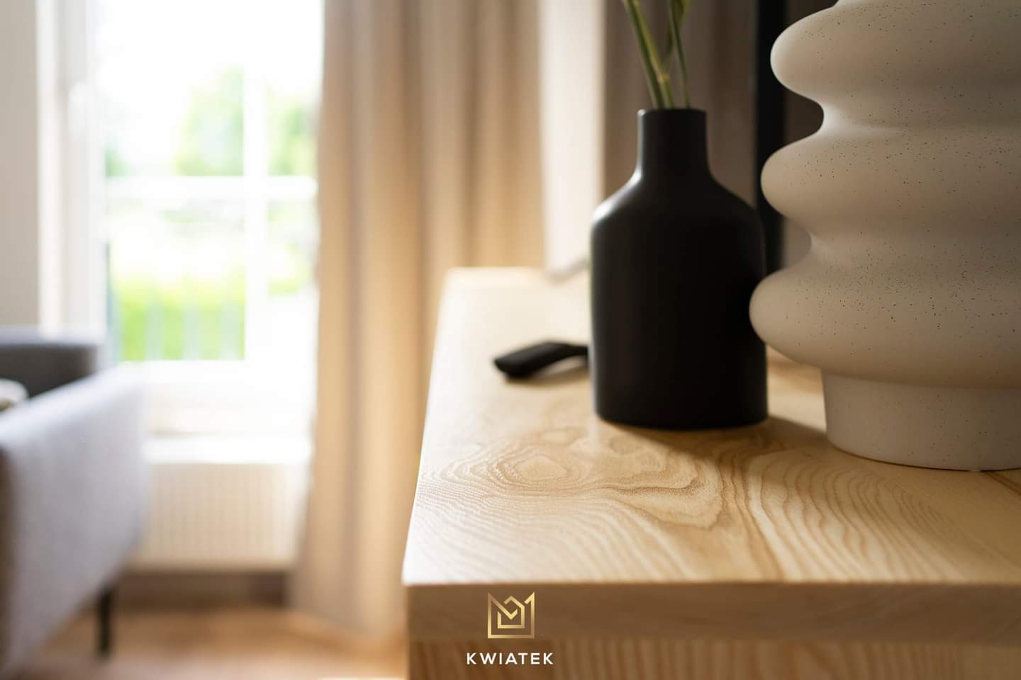 Apartament o powierzchni 76 m2 z użytkowym poddaszem o dodatkowej powierzchni 5m2 (po podłodze 40 m2) to doskonale zaprojektowana przestrzeń, która dla maksymalnej funkcjonalności wymagała przearanżowania niektórych stref. Stylistyka wnętrza została dokładnie przemyślana i stanowi spójną architekturę, dopracowaną w najmniejszym szczególe. To wyjątkowy Apartament, w którym każdy poczuje się komfortowo, nie tylko ze względu na wysoką jakość wykończenia oraz użytych materiałów, ale także poczucie przestrzeni dzięki temu, że Apartament jest dwustronny, w każdym pomieszczeniu posiada duże okna z widokiem na park, a także posiada dwa wyjścia na taras z salonu oraz kuchni.